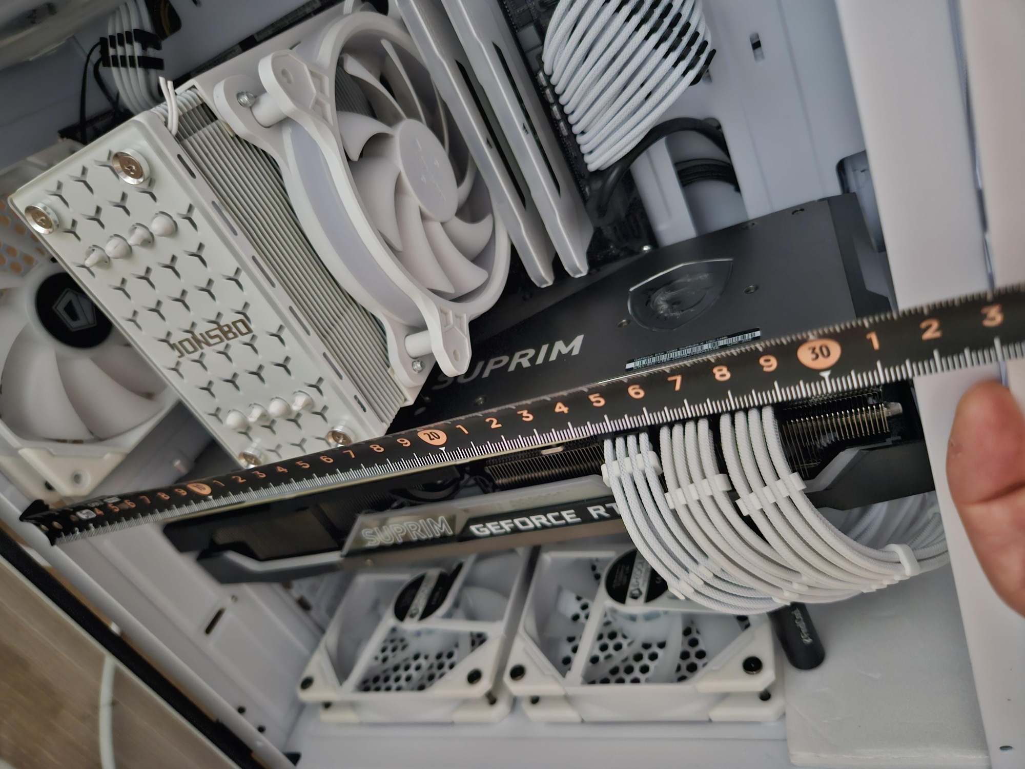 케이스에 cpu 등 모든부품을 넣은상태에서 그래픽카드를 조립하기위해서는 직선으로 그래픽카드를 넣어야 하는데 넣을수있는 직선넓이 길이가 310mm이었다.